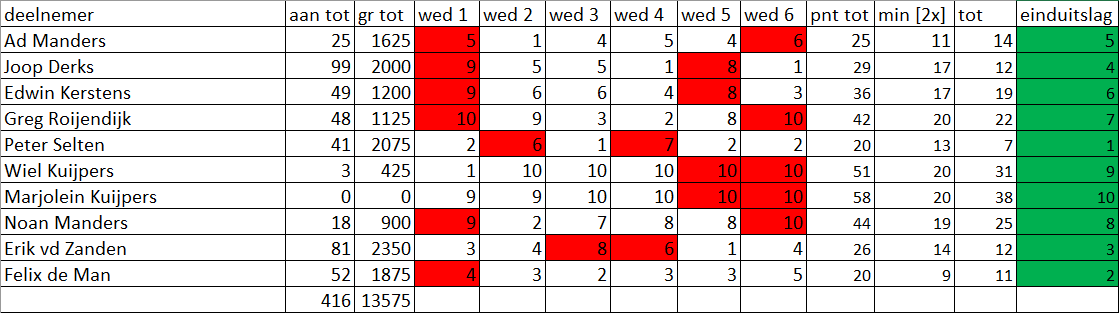 uitslag wedstrijd 6 Najaar 2025