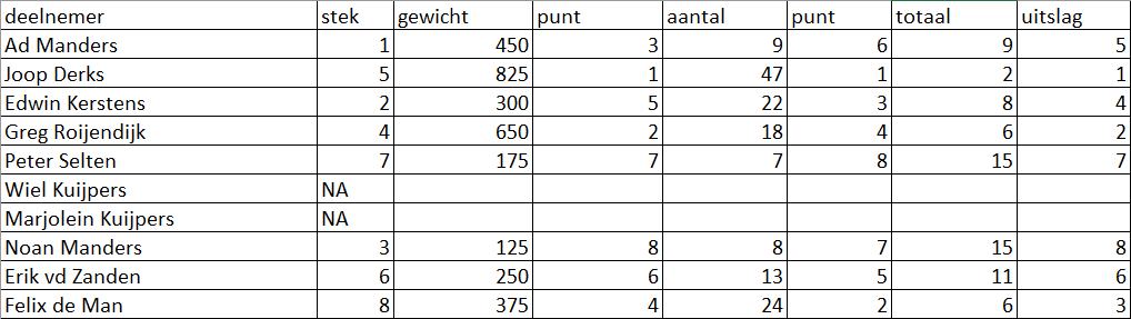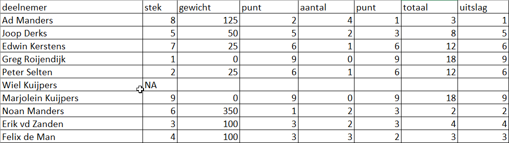 hier de uitslag