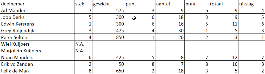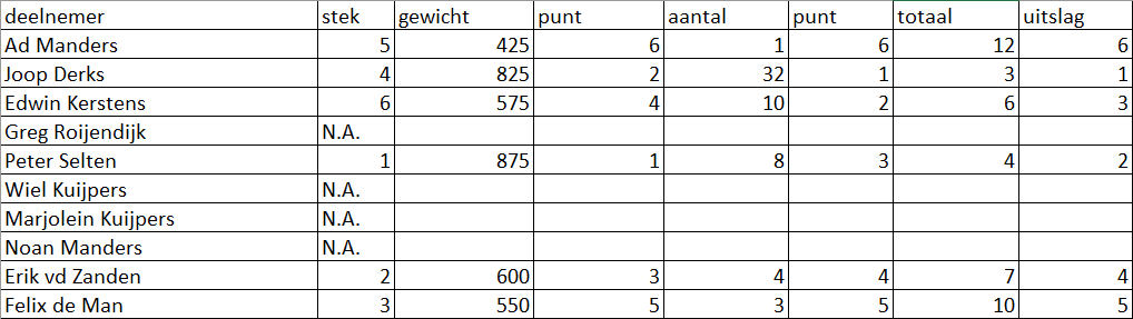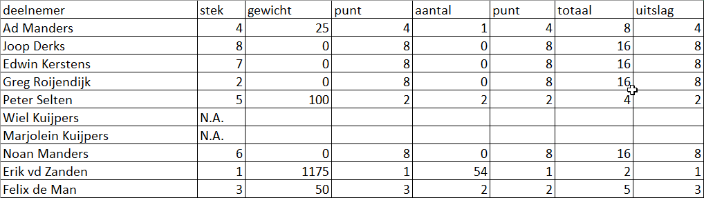 15-05-2024 22:57Alle deelnemers vangen vis